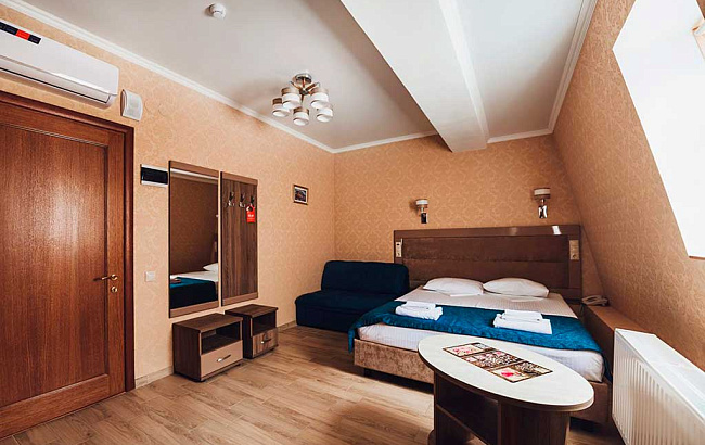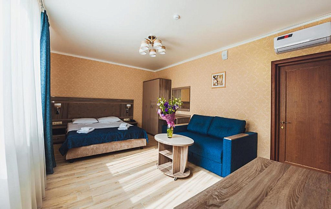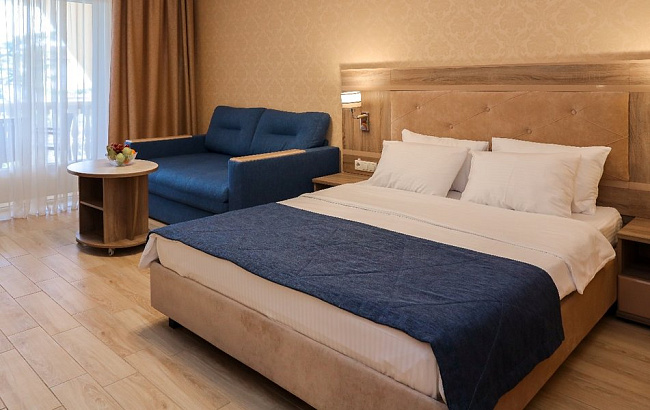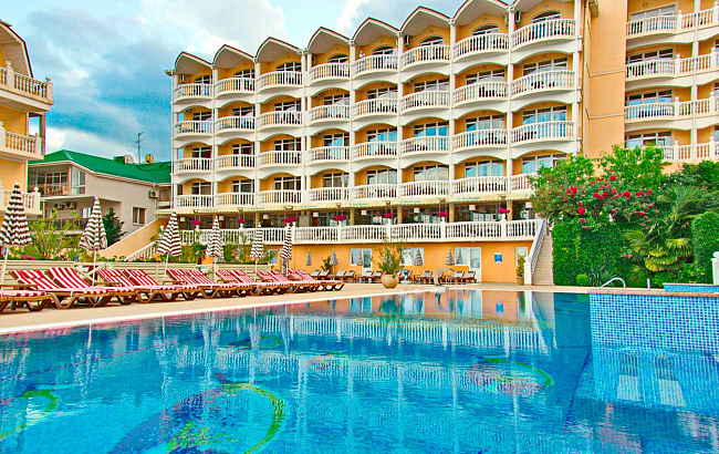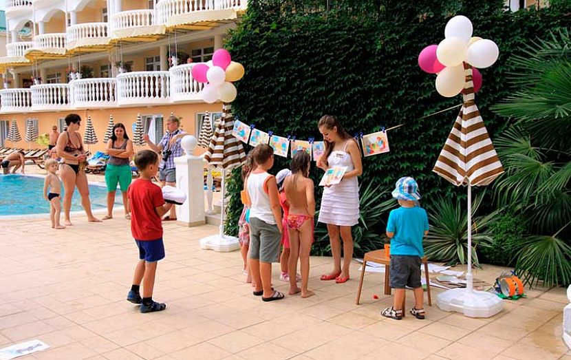 В распоряжении гостей 20-метровый бассейн с подводным гидромассажем, аква-баром и аэромас сажными зонами, детский бассейн, массажный кабинет, тренажёрный зал, детская анимация, настольный футбол, диско-вечеринки, автостоянка, wi-fi на территории.