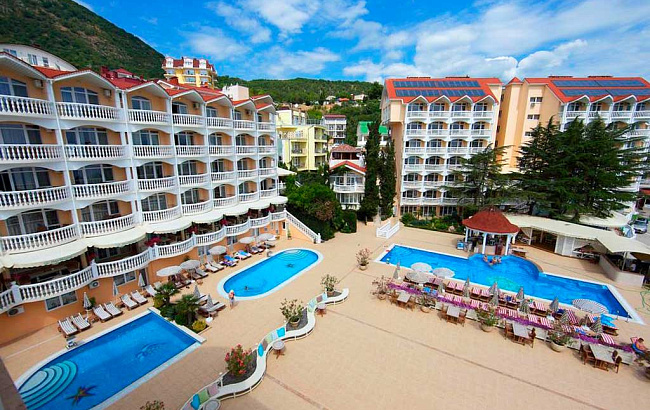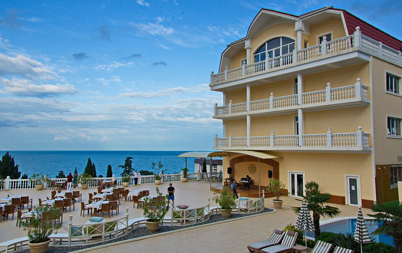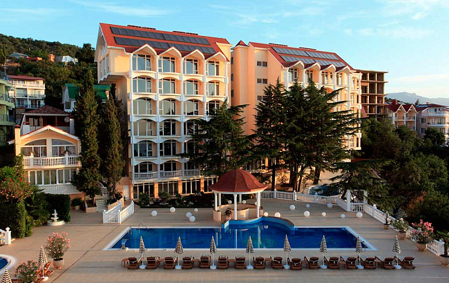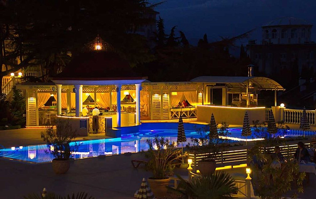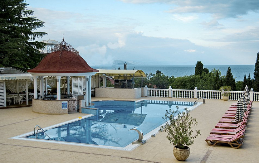 Отель «Марина» (бывш. парк-отель ИваМария) расположен у подножия горы Кастель в Профессорском уголке г. Алушта.
